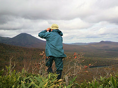 湿原を通り、崩落箇所を注意しながら通り、