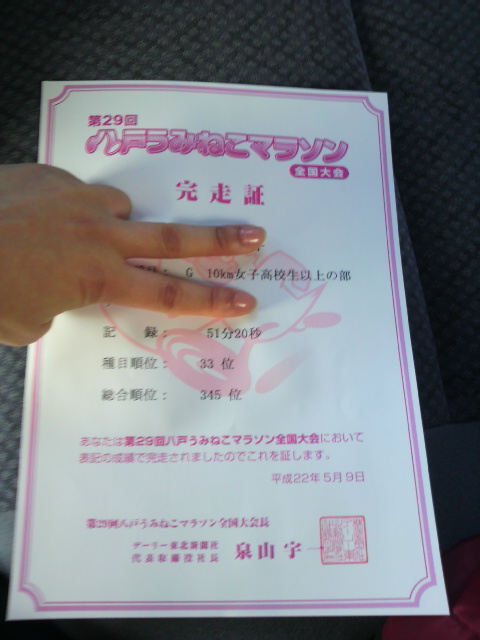 このタイムは、去年の五所川原のメロスマラソンの時より1分以上速いのだ!自己ベスト更新しちゃいました~☆