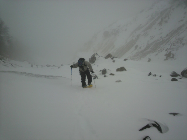 今日も残念ながら滑走はきつそうだ、ちゅうことで板は車に置き去りにして、酸ヶ湯から~視界よけりゃ大岳・赤倉経由でスキー場までの大散歩PLANを決行。