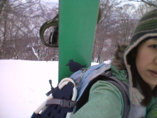 板の裏にまで雪がくっつきまクリスティ。あとはゴールまではツボ足徒歩で、とぼとぼ帰還しますた。(14:20)