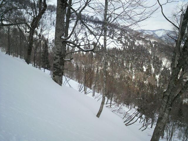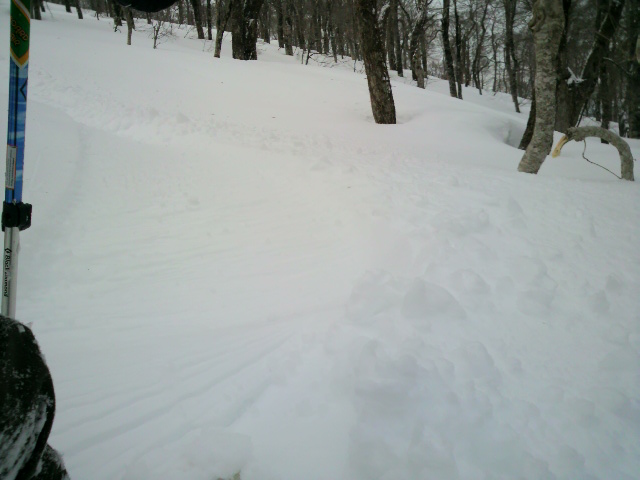 暫くは快適に滑走。林間は疎林で、八甲田ほどタイトではない。