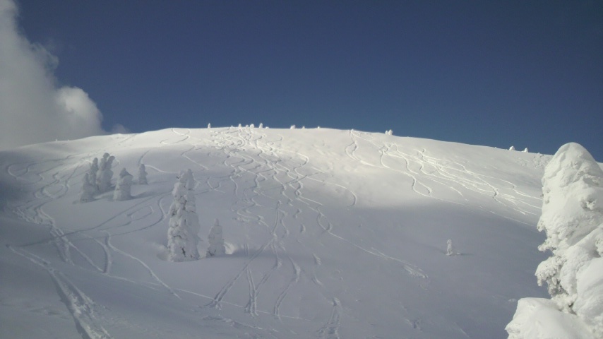 間違いなく、一番乗り~♪(・∀・)こんなにでけー斜面も、滑走はあっちゅうまwww