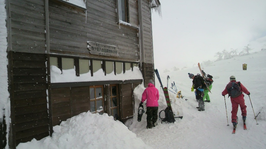 山頂方面、視界激ワルにつき、小屋でたっぷり休憩をとる。