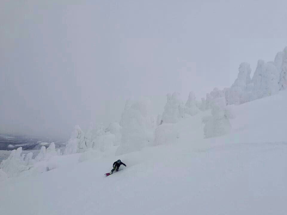 やりたかった沢RIDEは、雪庇崩れが多くてお預けとなったけど、誰もいない山。北八甲田を客観的に見て浸る。強風での登頂成功。うっすらパウダーで走る雪。
