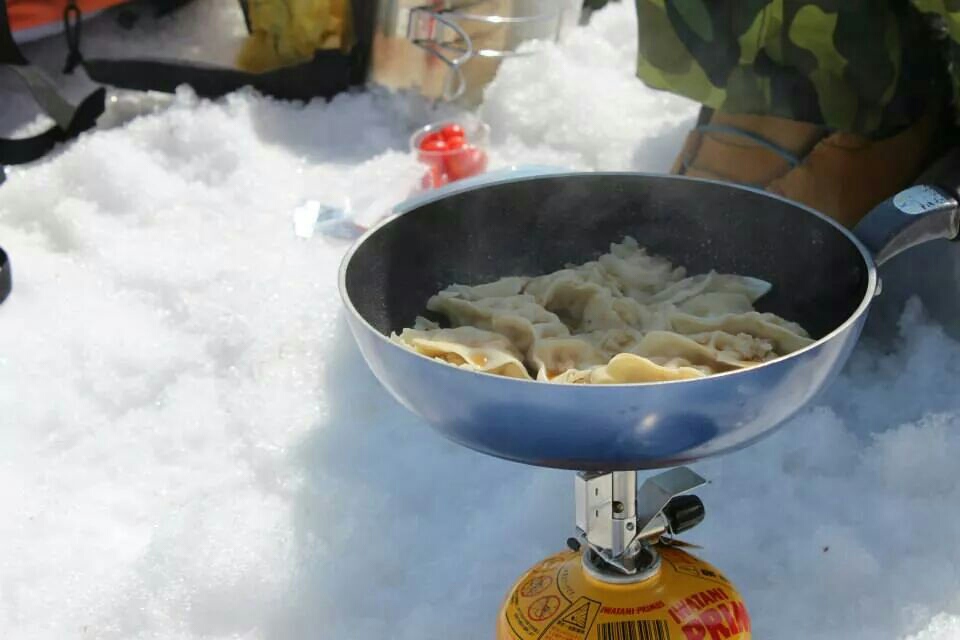 ここで、ザックに忍ばせたフライパンをセット。餃子を並べればザーギョーPARTY♪