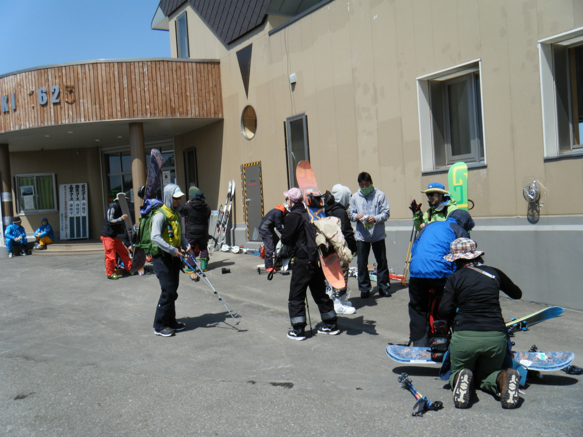 大黒サワーは豊富な雪の量で広すぎる漏斗状のバーンでものすごく楽しいとこなのですが、林間サワーがけっこう割れてる情報と、参加人数が増えたため、台数多くデポできないという理由で今回は諦めたのでした。
