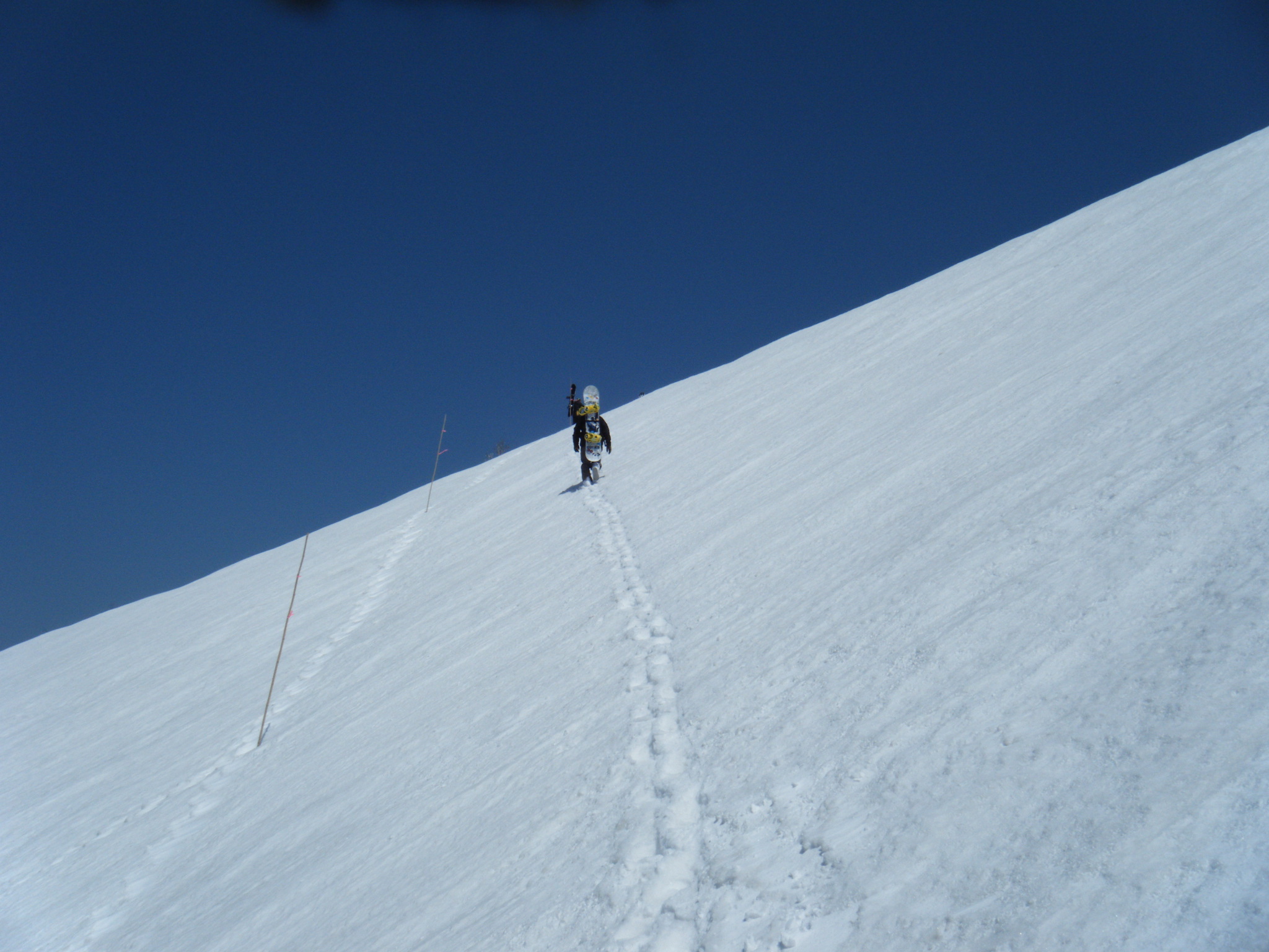しかし用心のため持参したアイゼンの出番もなく40分ほどであっさり滑走スタート地点へ到達。