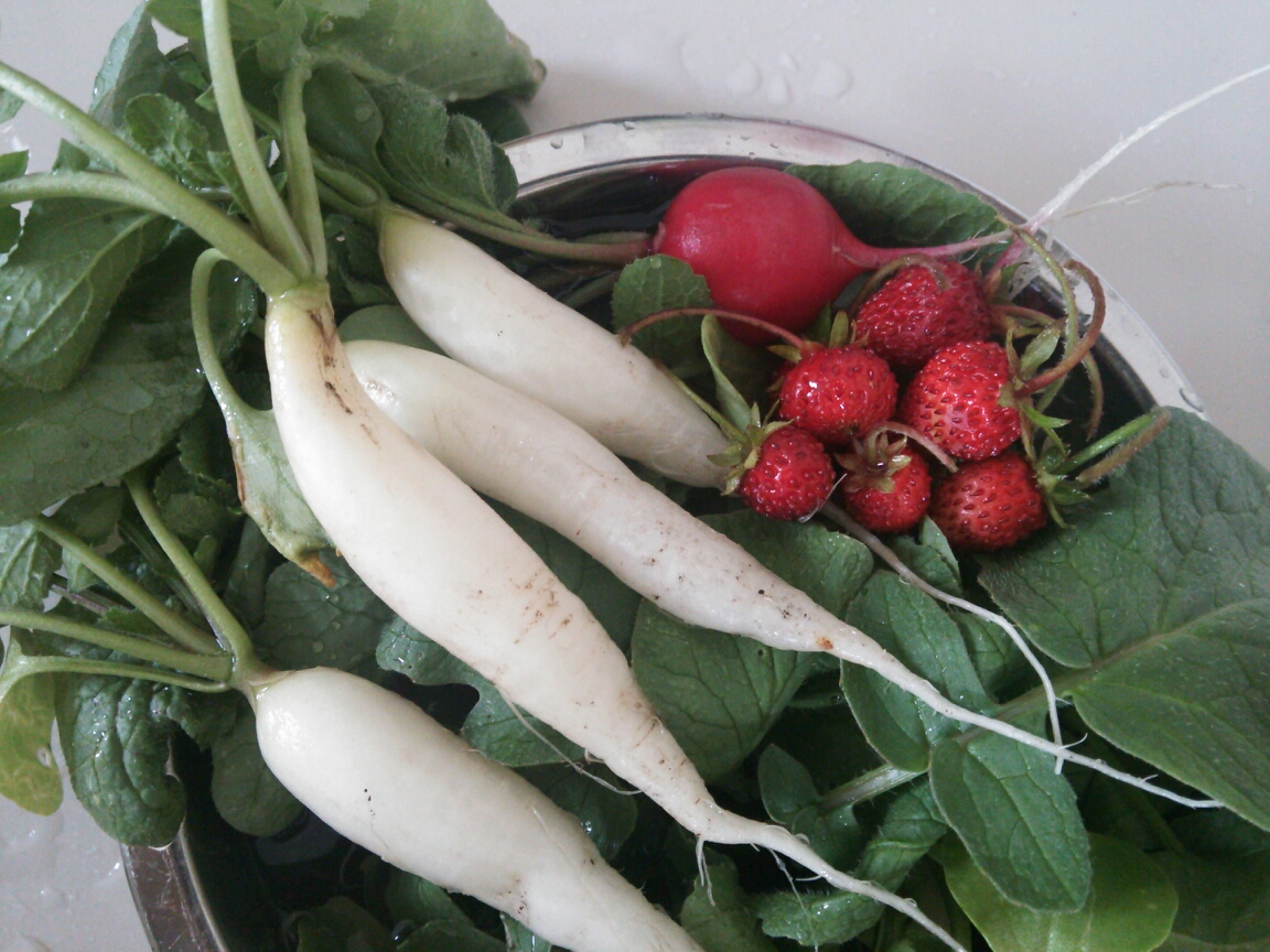 こちらのイチゴは頂きものの苗が越冬したもの。色が抜けたのではなく、白いイチゴらしい。イチゴのアルビノ!?