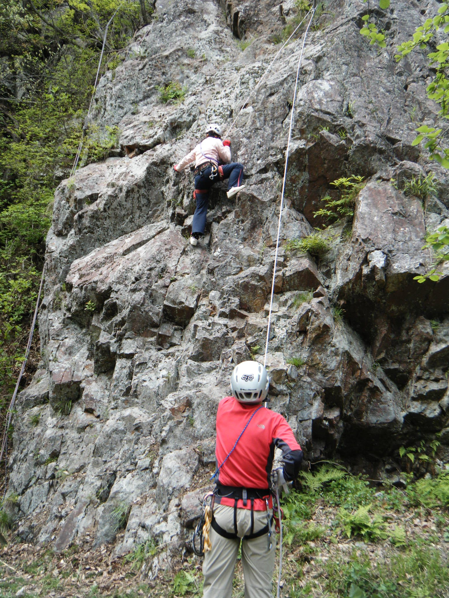 最終的には上部に補助する人がいない状態で、一人で登ってセルフビレイ(自己確保)とって、降りるとこまでこなしてました。たった一日でここまで出来るのです!すばらしい☆