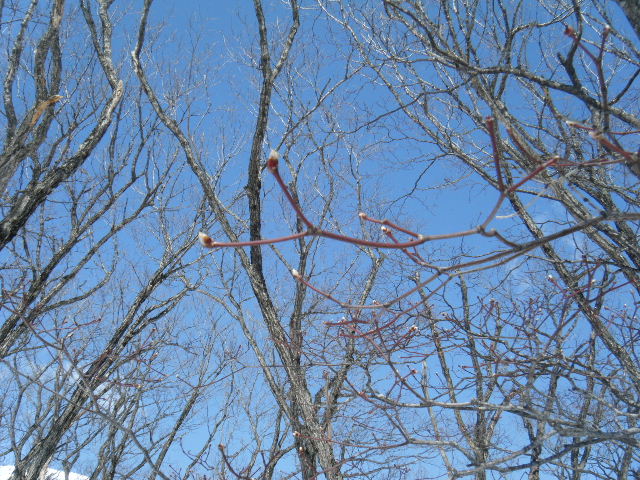 尾根歩きは順調に進む。途中の木々に春を見つけて、写真に収めた。