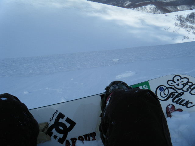 滑走中も、規模は小さいが斜面全体がうごめく雪崩を目の当たりにし、「うわーやばい!」と思った、がなんとか安全圏まで滑り降りた。