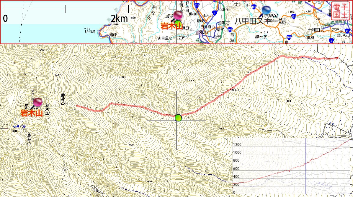 事前にルートを下調べすると、山頂まで直線距離で5km・・・。