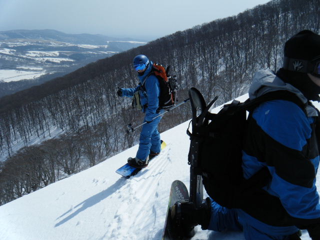 登って下るという企画に、唯一のスノーボードで参加してきました♪