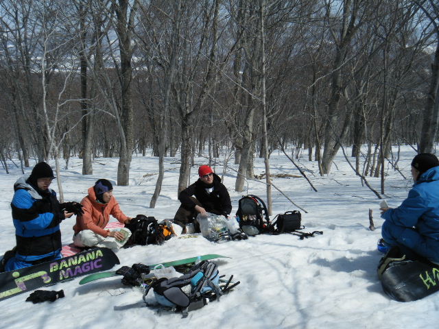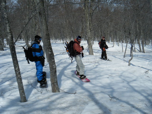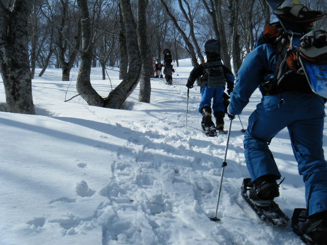 受講者は半数以上がスキー。スノーボーダーでもスプリットの方が多く(講師さんのひとりもスプリット)、スノーシュー+スノーボードは自分と、もうひとりのかぐらから来た女の子だけだった。