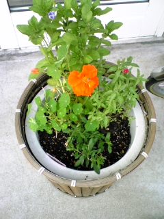 空いた植木鉢に、4種類の花を植えてみました。