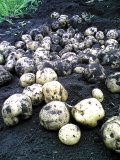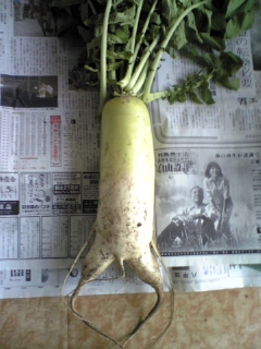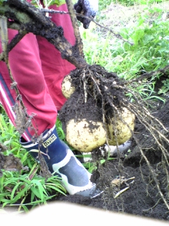 まだ青いのを、根っこを抜いてひとり収穫祭