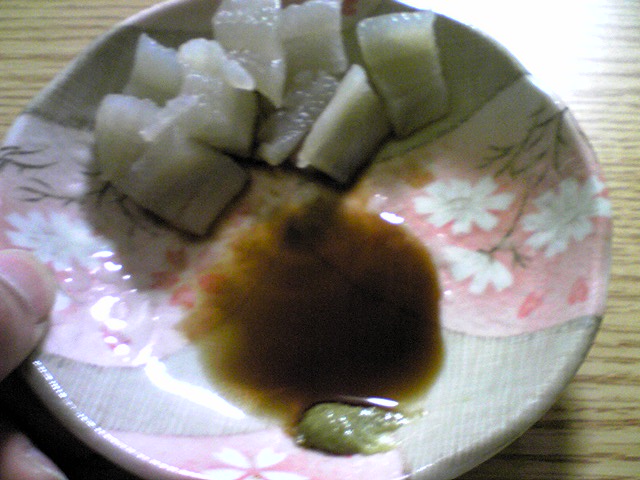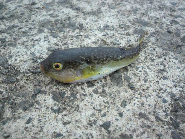 今日は主人が雨の降る中岸壁へ・・・。 1匹の魚をゲトしてきた! アイナメ20cm ・・・・・・。 これを無理やり刺身で喰らうの巻。 初めて食べました♪弾力があってうまい! さすが、高級魚☆ (スーパーで刺身買うと、けっこう高いよ~) どうやら今時期は、サバがけっこう釣れ始めているという情報です