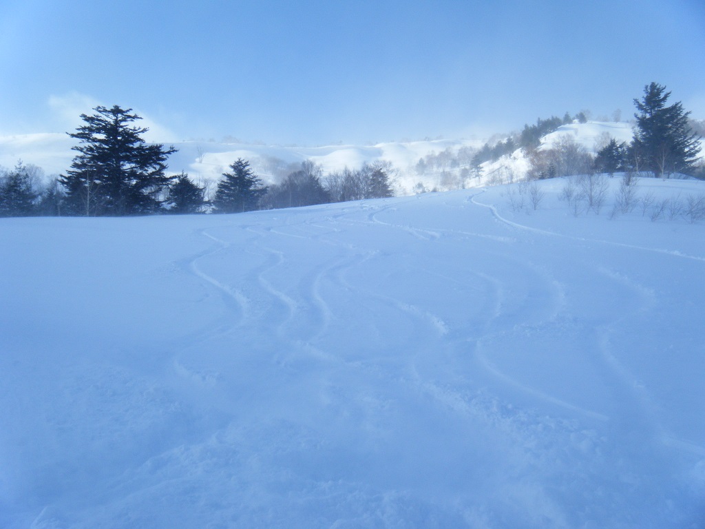 スキー場のほうまでトラバースして、もっと美味しいところを滑りましょうと助言&先導してくれ、ほぼノートラのスキー場のやや重めパウダーを、受講者みんなでおいしく頂きました。