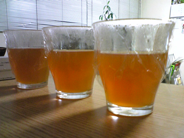 旬の過ぎたりんご「つがる」。フレッシュさが失われてきて、生食するのもさすがに限界か~ そんなときはいつも煮りんごかジャムにしちまうのですが今日はその煮汁でジュレを作りました。 ゼリーというより、ジュレ(単に言葉の響き) オーガニック紅茶でほんのり香り&色を付けています アップルティーみたい♪でもしっかり甘い、デザートです