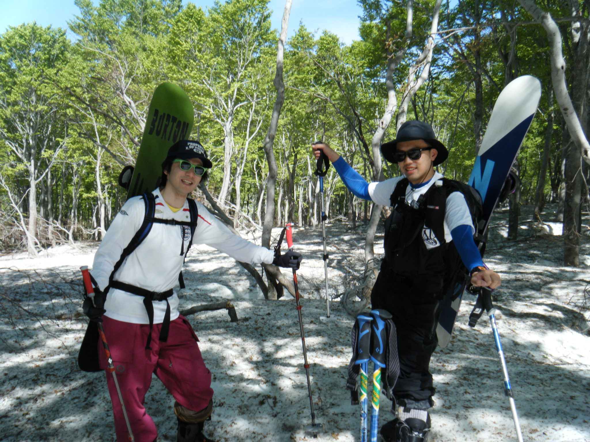 その後は行きと同様、夏道と冬道を駆使して沢で遊んだ後は、新緑の中を板を履いたままポール漕いで漕いで登山口へゴールしました!